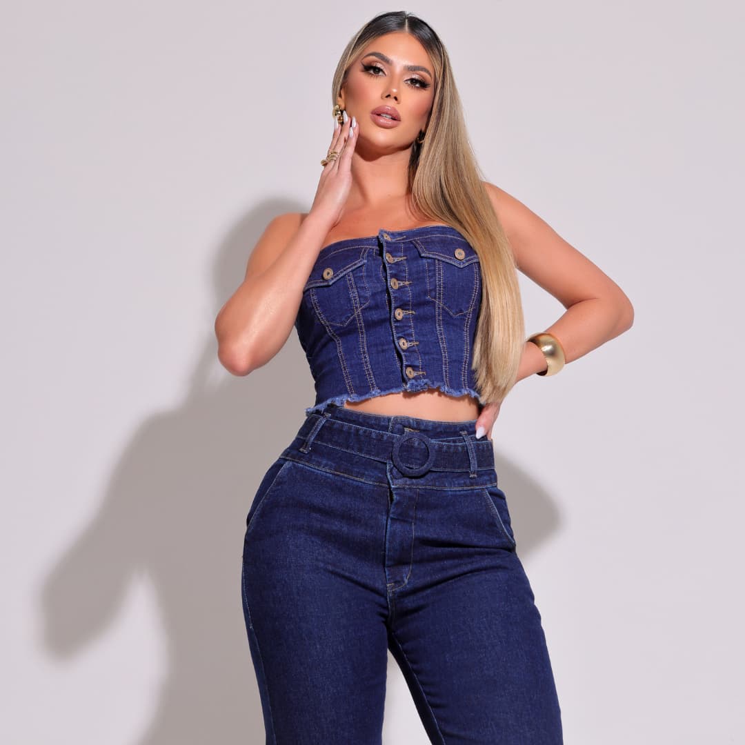 A Calça Jeans Modeladora Wide Leg Com Elastano e Cinto - BE3095 é a escolha perfeita para quem deseja aliar estilo e conforto em uma peça única. Com modelagem wide leg e efeito modelador, essa calça alonga e valoriza a silhueta de forma sofisticada. Acompanhada de um cinto jeans estiloso, garante um visual moderno e completo, ideal para diversas ocasiões.
